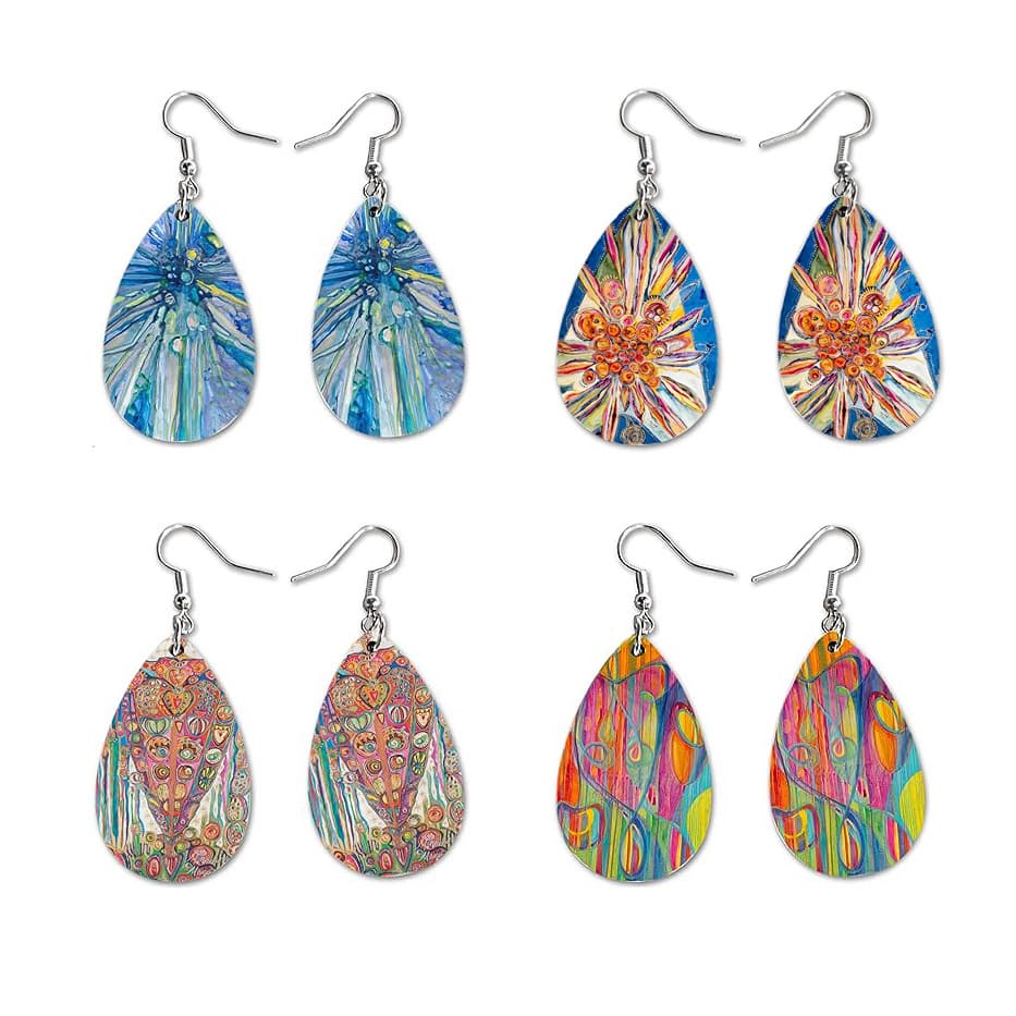 These dangle earrings feature different paintings of mine and are produced by Serenity Home Goods. Choose your favorite to bring color to your everyday look, or give as a thoughtful and affordable gift. Available on Amazon.